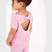 Нарядный костюм для девочек — стильный комплект из блузки с короткими рукавами и широких штанишек на резинке. Оригинальный вырез на спине в виде бантика добавляет очарования, а свободный крой обеспечивает комфорт и свободу движений.